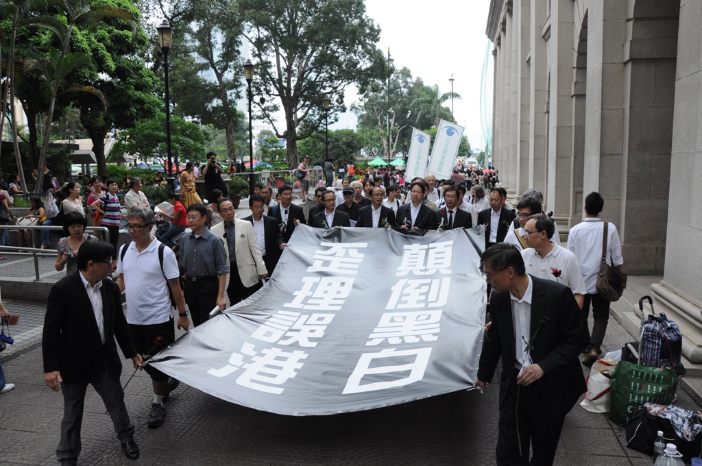 遊行有十多個 專業界別的人士,包括醫學、規劃、法律、工程、測量、會計、高教、資訊科技等,共有50多人出席。遊行時專業人士手持大橫額,寫上「顛倒黑白,歪理誤港」,全程靜默沿途,以哀悼現行政府的替補方案。